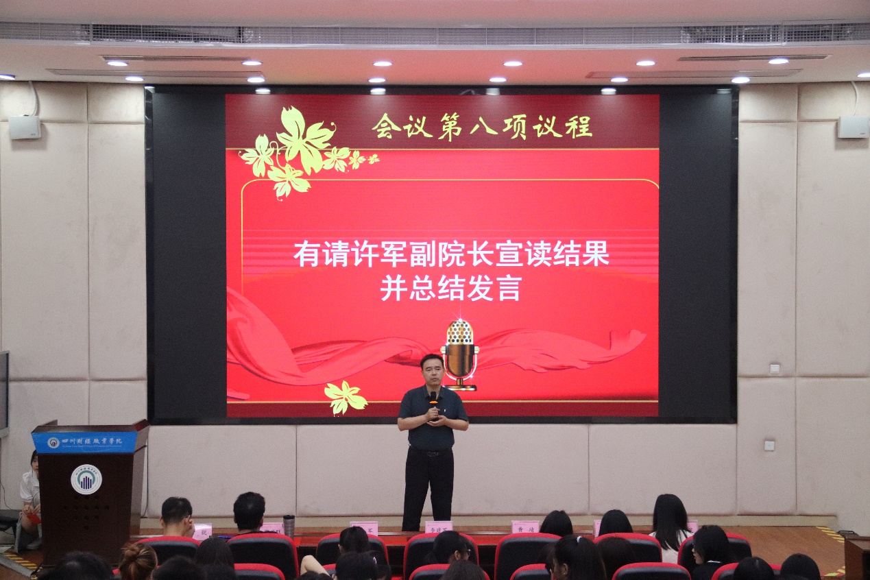 会议第三项议程,组织开展第四届学生会团总支竞选,首先由信息学院第四届团总支学生会竞选人上台进行自我介绍,在场125名团员代表和青年代表秉持公平公正公开原则,民主投票选出下一届团总支学生会干部。投票结束由许军副院长宣布选举结果并总结讲话。许军副院长表示,学校高度重视学生工作队伍建设,后续会在学生干部培养等方面持续发力,提升组织关怀,希望新一届学生干部不断提高工作能力、加强岗位自信、增强使命担当、提升岗位情怀,成为一支“有高度、有法度、有温度、有深度、有维度、有态度、有力度”的学生工作队伍。