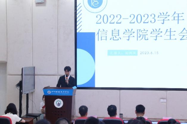 会议第二项议程是对第三届团总支学生会工作进行总结和表彰。学生会团总支副书记童彤和学生会主席胡洲国分别汇报了信息学院2022-2023学年团总支学生会工作开展情况,希望新一届学生会发扬优良传统,更好地服务学生,祝福学生骨干们在学生会的历练中收获成长与进步。