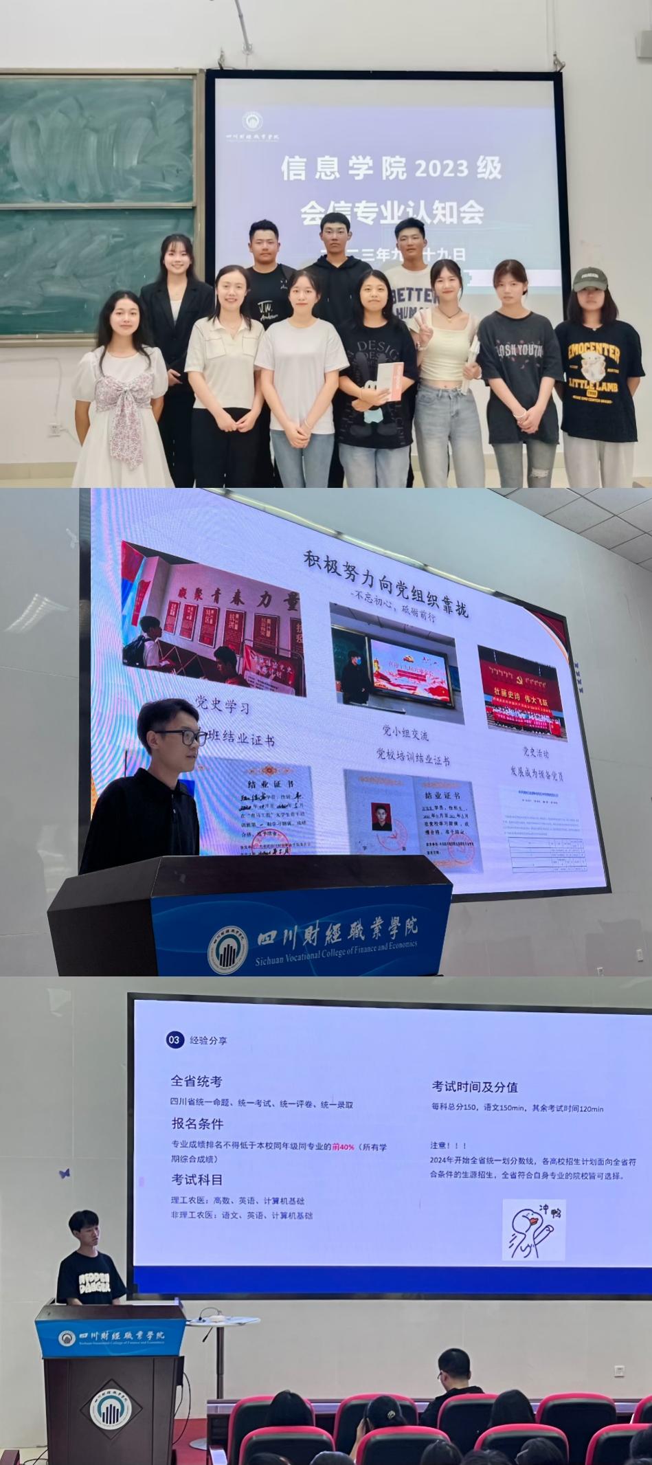 以知为瓦,以行搭桥。为了帮助2023级新生对大学生活有全面的认识,指引新生找准学习方向,了解专业背景和发展前景,更快的适应融入信息学院大家庭。信息学院于2023年9月19日下午组织2023级全体新生在教学楼b栋开展了专业认知分享会。