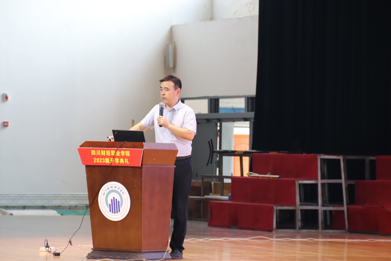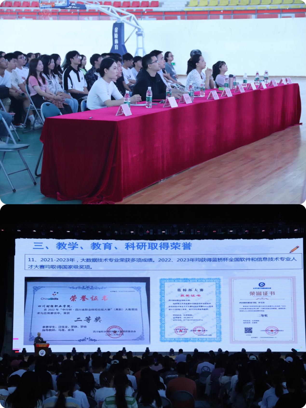 少年自当扶摇上,揽星衔月逐日光。为了让新生感受到信息学院温暖友爱的氛围,更快进入并适应大学生活,信息学院于9月19日在体育馆召开了2023级新生开学典礼。信息学院党总支书记、院长李建军,副院长许军,各教研室主任,班导师团队,学工团队以及2023级全体新生参加开学典礼。