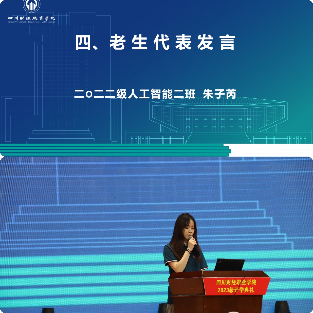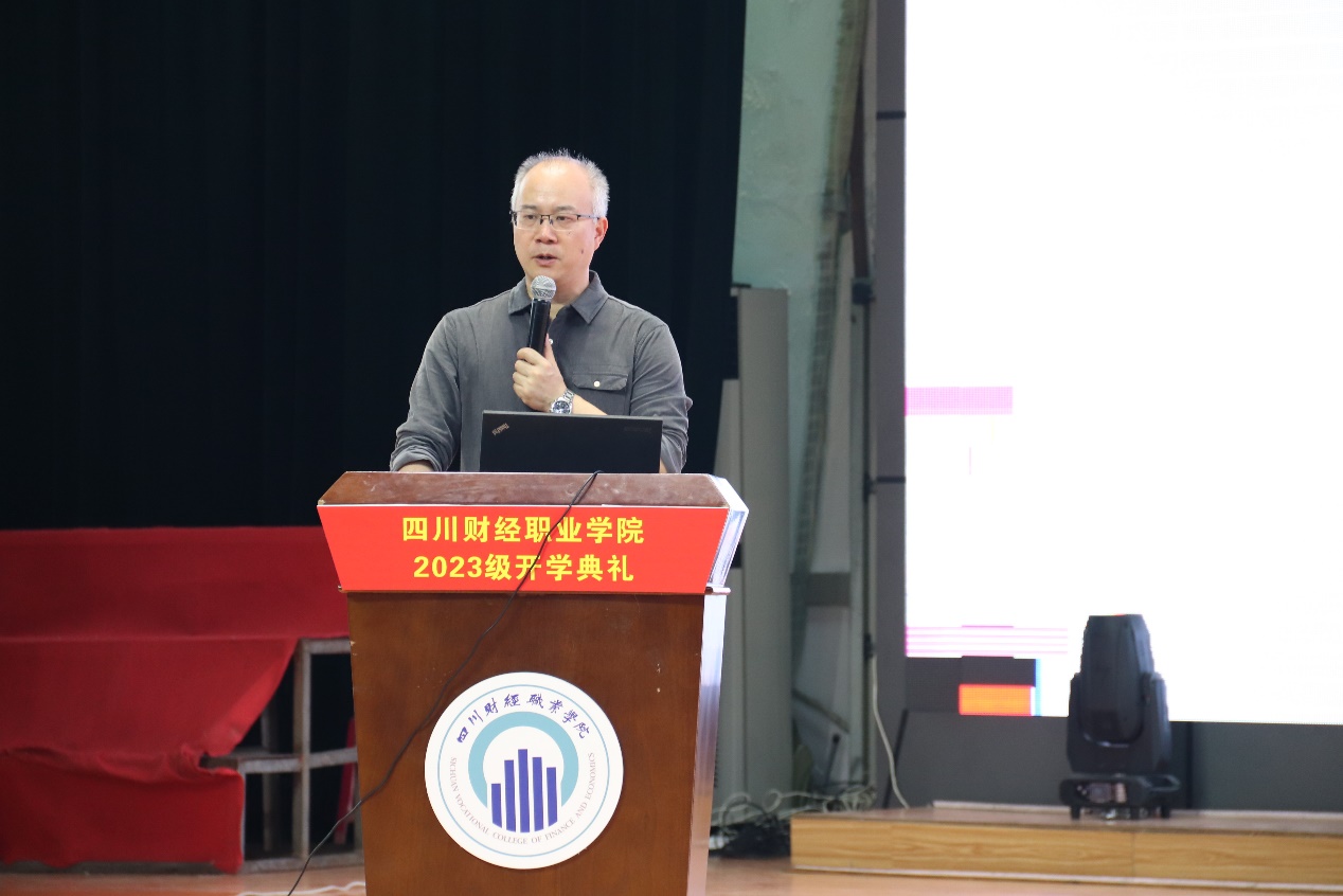 会上,老生代表朱子芮为新生送上祝福,希望新生们传承“理财至诚,精业至能”的校训,弘扬“勤奋刻苦,学做结合,文明守纪,笃行乐群”的学风,明大德、守公德、严私德,有正确的道德认知。最后,新生代表李炜表示,他们怀揣梦想进入了梦寐以求的大学。在今后的学习中会脚踏实地、认真的学习,珍惜现在所拥有的学习环境与资源,不给自己的青春留下遗憾。书山有路勤为径,学海无涯苦作舟。从现在这一刻起,插上理想的翅膀,换一种心情,投入到全新的学习生活中,未来三年的大学生活一定会变得充实无悔且精彩!