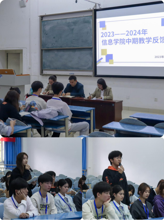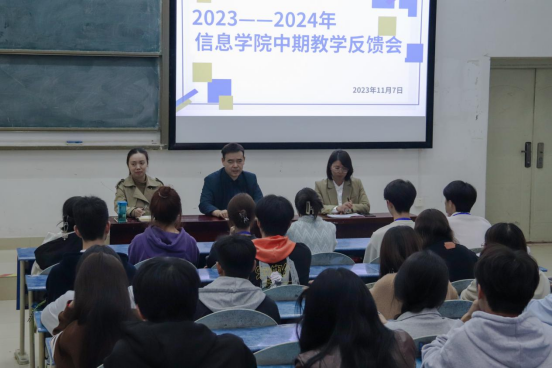 真教育是心心相印的活动,实反馈是步步落实的桥梁。为了实现教学质量和同学们的学习效果共同提升和持续优化,让同学们更好感受到学院的教学服务一体化,增强同学们学习的主动性和积极性,信息学院于2023年11月7日下午在B208教室召开信息学院中期教学反馈会。信息学院副院长许军、教学督导常竞老师和唐雨薇老师以及信息学院三个年级各班学习委员,共同讨论提高教学质量和提升学生学习效果的方式方法。