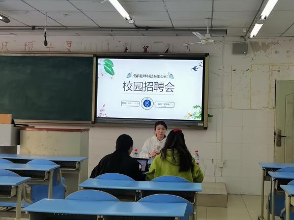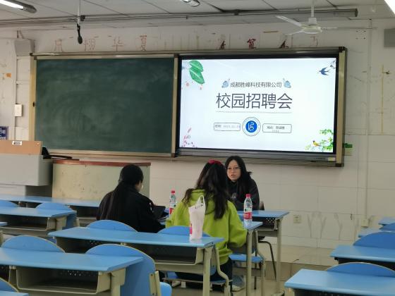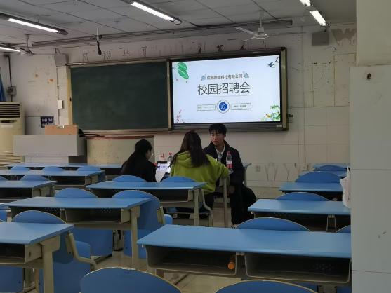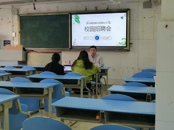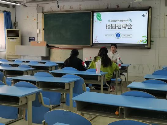 成都胜峰科技有限公司的面试招聘会于当天下午14时在至诚楼B206教室准时开始,学生们早早地就在等候室翘首以盼,一个个学生拿着自己精心准备的简历,按照自愿的顺序依次进去面试,面试时有的学生沉着冷静,有的面带微笑,有的声音高亢。