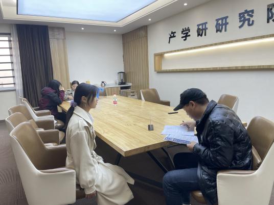 成都四财科技有限公司的面试招聘会于同一时间在知行楼A110会议室召开,学生们提前在面试间门口排起了队伍,陆续有学生从面试间走出来,学生们彼此之间交流着面试心得,相互勉励。