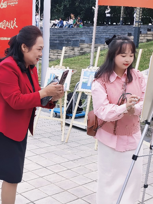 2023年10月20日,协会成员采用现场教学作画、手工绘画脸谱、竞赛优秀作品等活动,向同学们阐述了刀笔油画的发展历史,分享相关作画技术。活动现场秩序有条不紊,吸引了不少热爱绘画的同学们,充分展现了协会干事的职业素养以及和同学们的协作精神。学院张华书记亲临现场参观了同学们的刀画作品展览,并鼓励同学们借助光影刀画协会这个活动平台发展兴趣爱好,继承发扬中华传统文化。