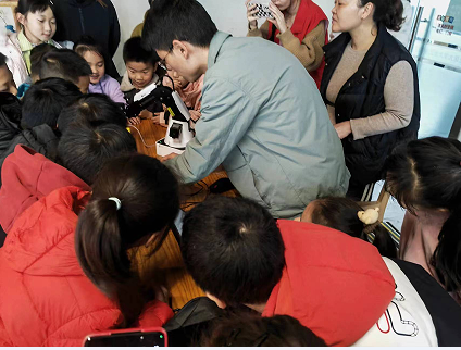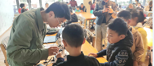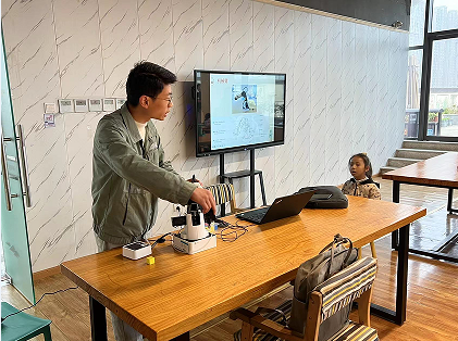 活动伊始,具有资深经验的人工智能专业刘老师以生动有趣的语言,为孩子们讲解了AI的基本概念、发展历程和应用场景。他提到,AI技术正在改变世界,而未来的科技人才需要从小培养,通过模仿人类的学习和思考方式,AI正在变得越来越拟人化,它可以帮助我们解决很多问题,让生活变得更加便捷和美好。紧接着,刘老师带领孩子们来到互动体验区,尝试操作AI机械臂,通过在电脑输入一些简单的代码,操作移动机械臂。经过互动,孩子们纷纷表示将来要成为一名优秀的AI工程师。此外,此次志愿活动还特别注重培养孩子们的团队意识和沟通能力。在活动中,孩子们被分成若干小组,共同协助完成AI试验,他们互相协作,共同讨论,不仅锻炼了自己的能力,还收获了珍贵的友谊。让孩子们真真实实的感受到AI的科技趣味,并不断发挥他们的想象力来塑造他们无限的空间想象力。
