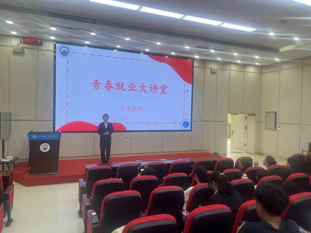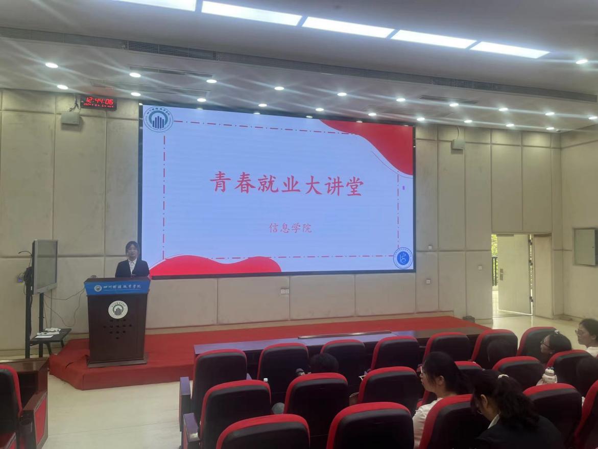 2024年6月11日晚,信息学院在至诚楼组织召开“青春就业大讲堂”朋辈优秀就业经验分享会,邀请了2020级会计信息管理专业学生艾春江对毕业班同学进行就业经验分享。