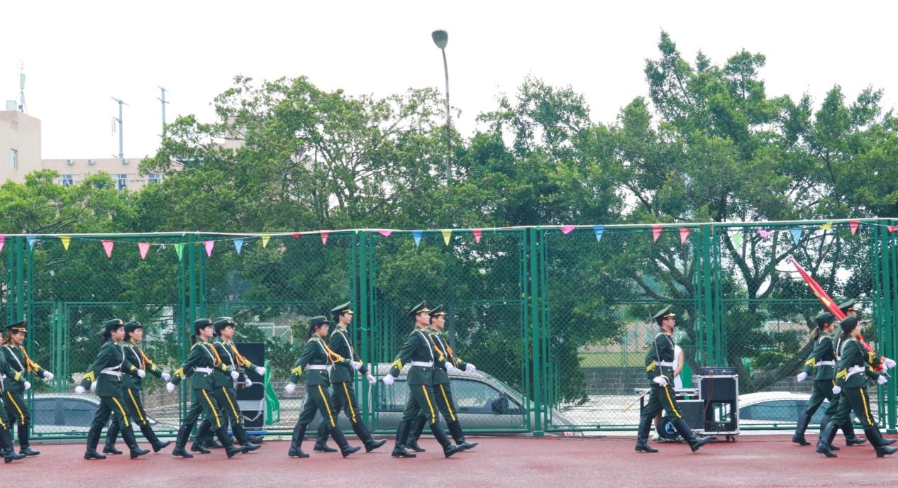 7时50分,学校国旗护卫队装束严整,迈着铿锵有力的步伐,护送五星红旗入场,全体师生庄严肃立。随着《义勇军进行曲》响起,师生们同唱国歌,向国旗行注目礼,凝视着国旗缓缓升起,致以最崇高的敬意。