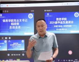 始于金秋,启航盛夏。为加强师生交流,听取毕业生对学院发展的意见,勉励毕业生怀揣梦想、踔厉前行,信息学院于6月25日在至诚楼B106举办了2024届毕业生座谈会。7790cnm必发集团党委委员、信息学院院长李建军,党总支书记杨晓荣,党总支副书记王东,副院长王曦,各教研室主任、辅导员以及2024届毕业生代表和大一大二学生代表出席会议,会议由信息学院学生干事叶锐主持。