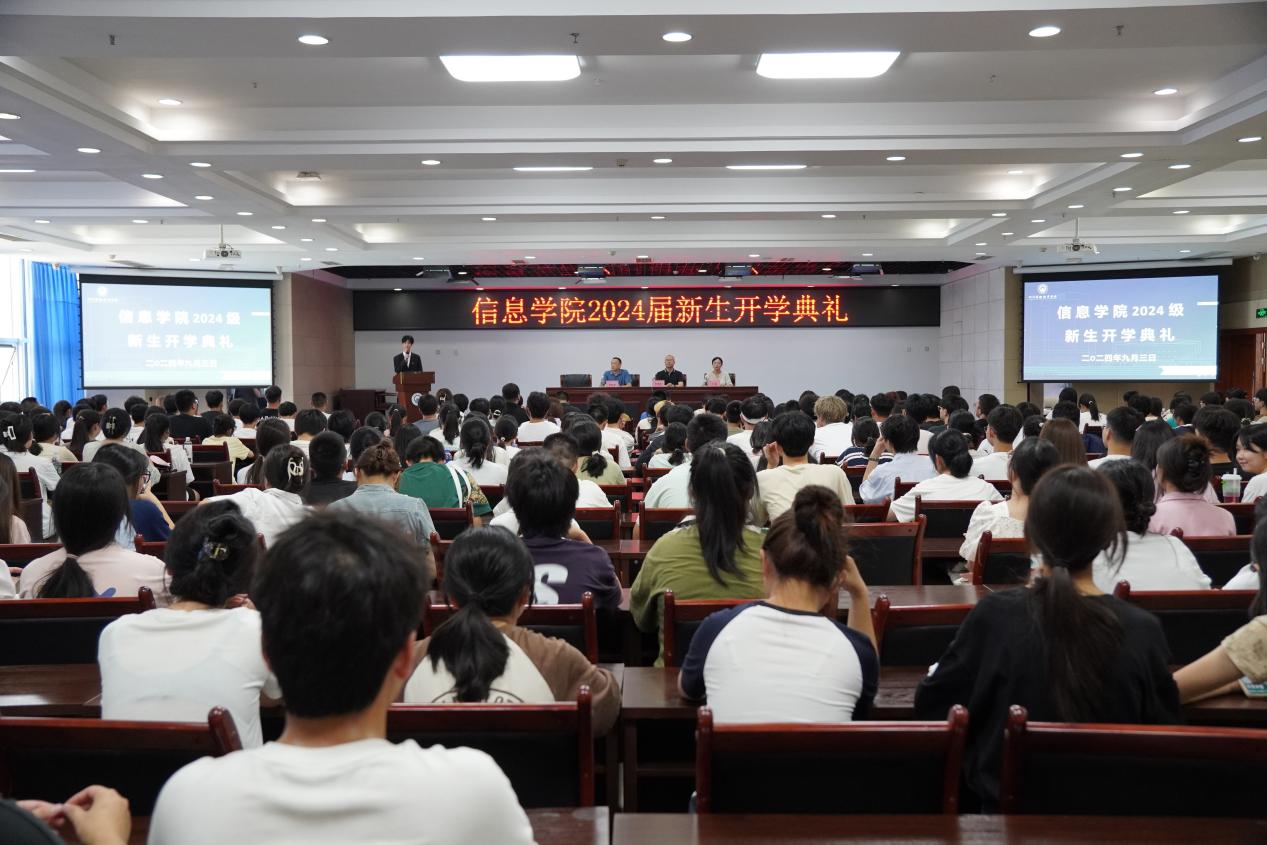晨曦抚秋叶,硕果续新篇。9月3日,信息学院2024级新生开学典礼在明德楼308隆重举行。430名新生胸怀家国情、拼搏奋斗的新征程从这里开始。7790cnm必发集团党委委员、信息学院院长李建军,信息学院党总支书记杨晓荣,副院长王曦,各教研室主任、专兼职辅导员出席典礼仪式。