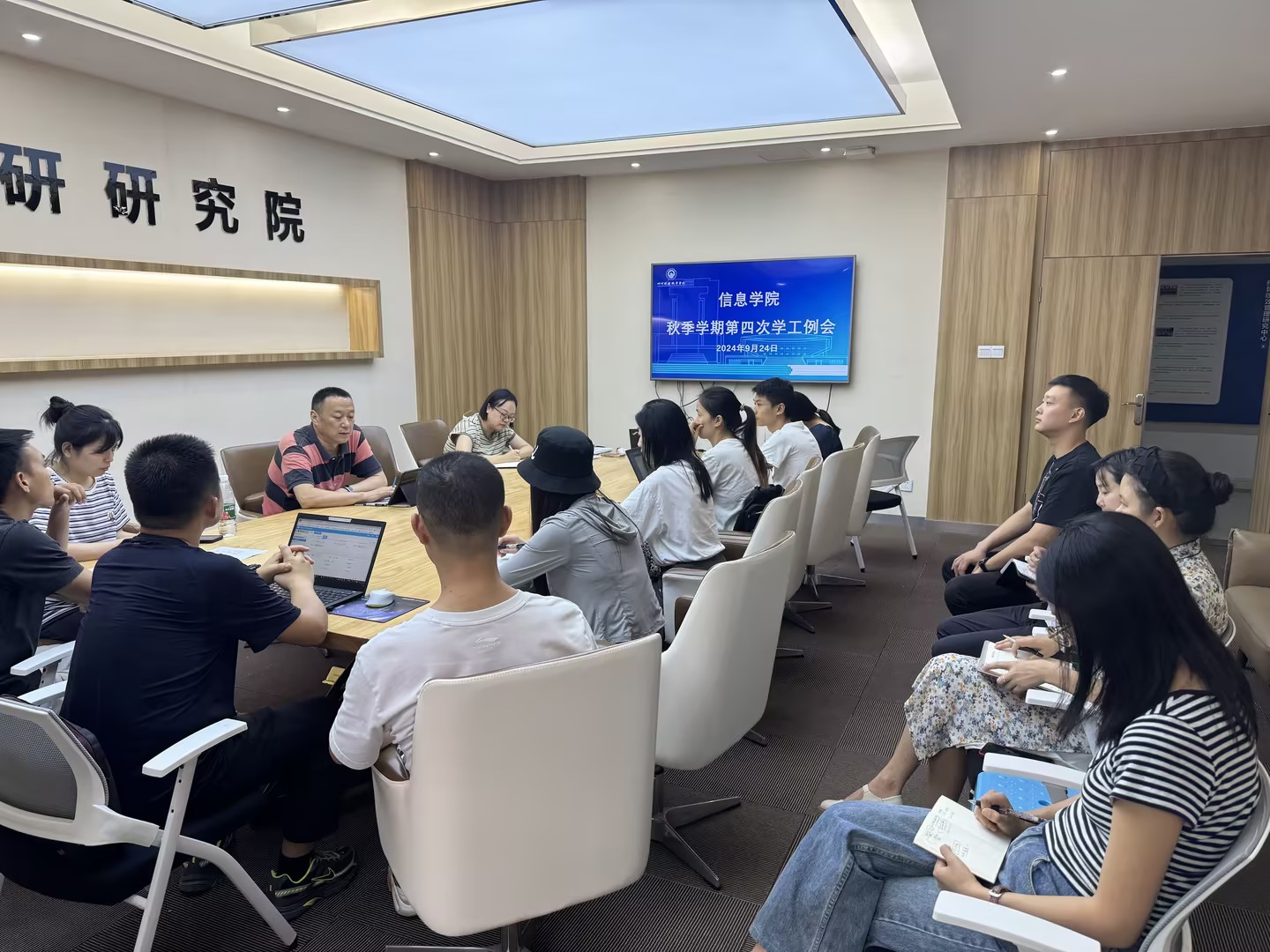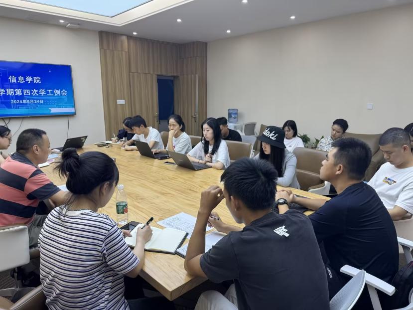 信息学院于2024年9月24日在A110会议室召开2024年秋季学期第四次学生工作例会。信息学院党总支书记杨晓荣和全体专兼职辅导员参加了此次会议,会议由杨晓荣书记主持。