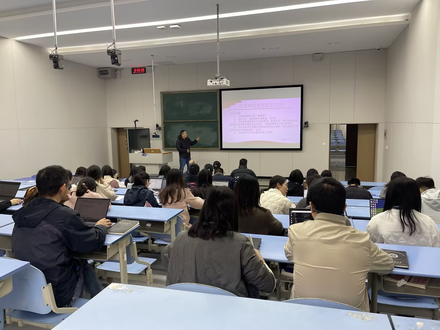为进一步贯彻落实党中央、国务院就业政策,扎实做好2025届毕业生就业工作,有效推动毕业生高质量就业,2024年11月19日,信息学院于B209教室召开2024级学生工作总结暨2025届就业工作启动会,会议由党总支书记杨晓荣主持,信息学院全体教师与会。