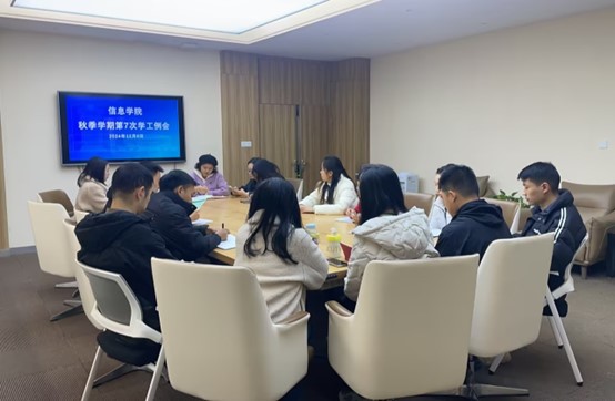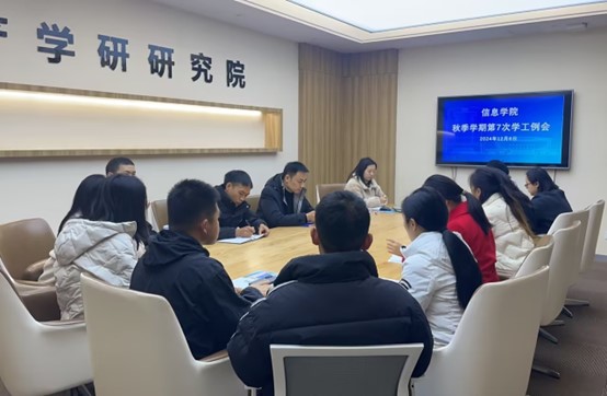 2024年 12 月 6 日,信息学院2024年秋季学期第七次学生工作例会在A110会议室召开,会议全面总结 11 月工作情况,通报1 1 月考核情况,对1 2 月重点工作和常规工作作了安排部署。