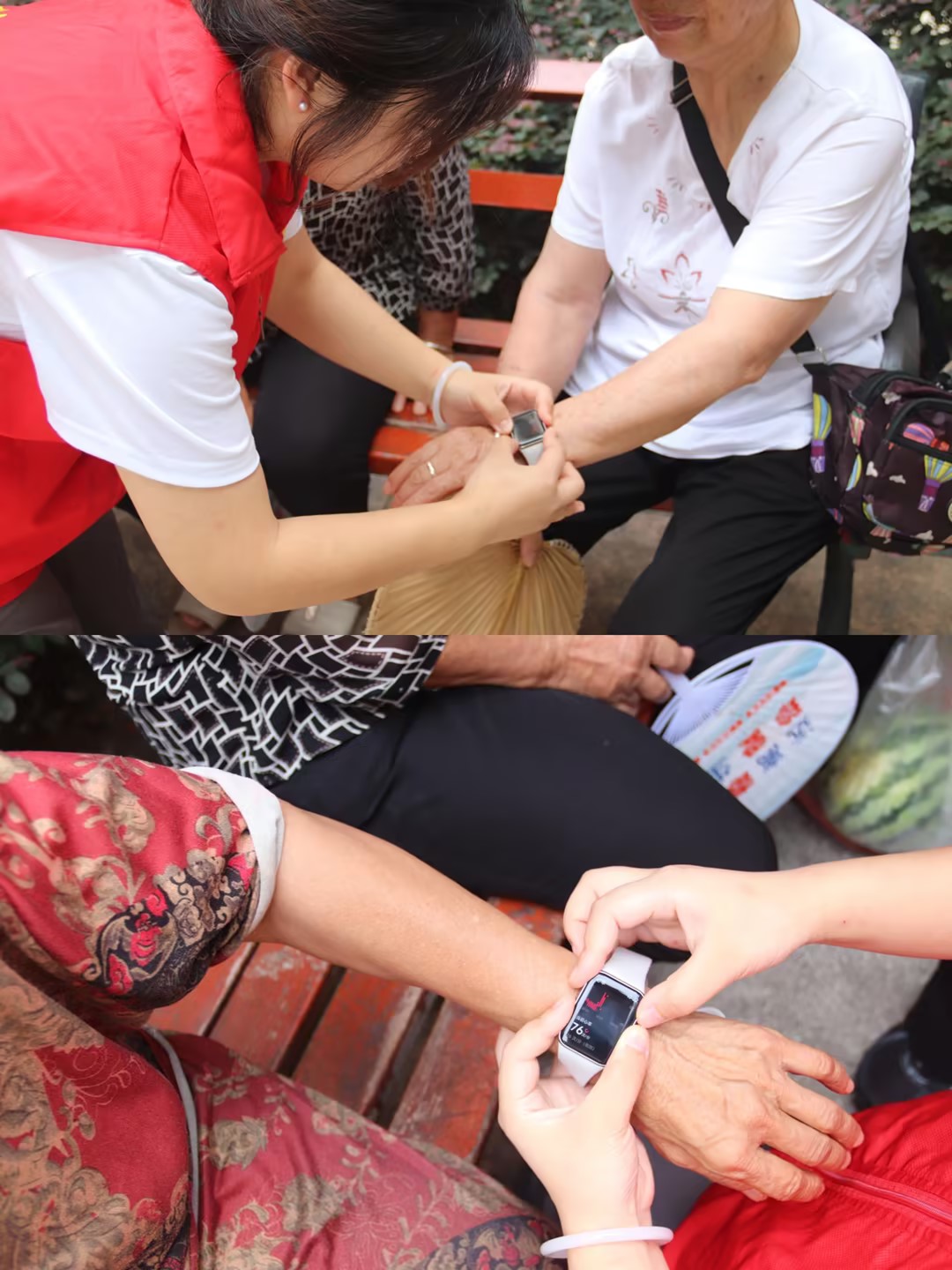 志愿者们在现场设置“智能生活可视化展区”,在智能家居方面,志愿者们向居民展示讲解了通过语音指令即可操控智能灯具、窗帘与家电,了解了“动动嘴就能掌控生活”的便捷;在智能健康监测方面,志愿者使用智能手环等设备为居民进行健康数据监测,并详细讲解如何通过 APP 实时追踪健康状况;在智能安防方面,志愿者展示了智能门锁、监控摄像头的防入侵演示,让居民直观了解科技带来的安全保障。
