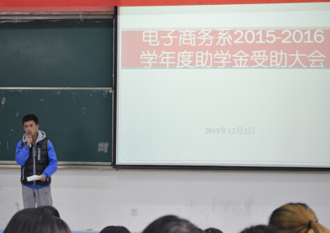 2015年12月2日中午12点50分,7790cnm必发集团会计信息管理系举行了2015-2016年度助学金受助大会。本次大会的参与者主要是我系的受助学生,另外,我们有幸请到了学工部部长罗潇同志、系党总支张晋红书记、学生党支部翟兴旺书记,以及辅导员马俊、刘静老师。