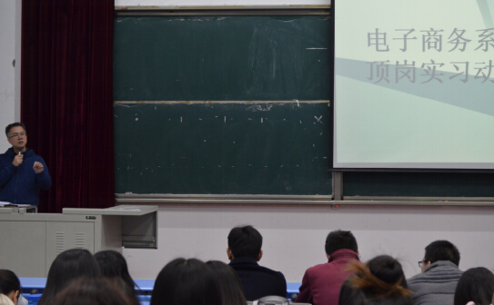 首先,我系李建军主任从学业、管理、要求以及要完成的任务四个方面进行讲话。李主任说到顶岗实习有8个学分,没有补考的机会,而且有着严格的要求;学校会安排指导老师对毕业生的顶岗实习工作进行指导。他强调每个同学必须与学校老师保持联系,且不能频繁转岗。