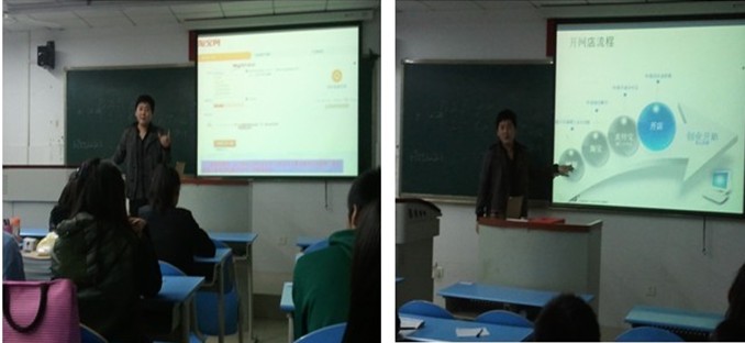 然后,翟老师详细的讲解了现在最火热的一种创业——淘宝开店。淘宝网是亚太最大的网络零售商圈,它的经营模式,风险程度都很适合大学生的创业选择。他详细的给大家讲解了开网店的流程、如何选择货源、怎样对待客户。