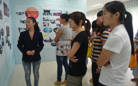 2012年9月4日早上9点30分,会计信息管理系2012级会电1-4班和电子商务1班新生在各班辅导员老师的带领下,来到我院位于B栋5楼的校史陈列室参观。