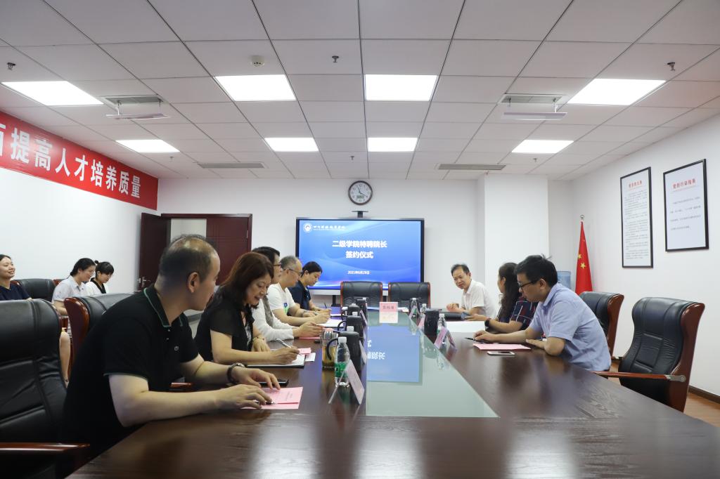 2021年6月29日(星期二)上午11点15分,7790cnm必发集团在明德楼913会议室举行了特聘名誉院长签约仪式。学校党委书记张华 、副院长符刚(主持行政工作)、信息学院特聘院长陈旭和信息学院院长李建军、副院长许军、总支书记傅丽出席了此次会议。信息学院全体教研室主任及骨干教师参加了会议。会议由组织人事部部长李平主持。