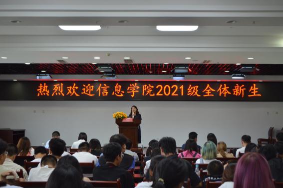 2021年9月24日下午13:00,信息学院在明德楼308会议室举办了新生入学教育,李建军院长、傅丽书记、许军副院长、学院各专业教研室主任及信息学院全体新生参加了此次活动。