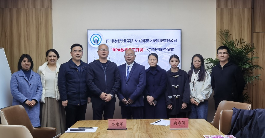 2023年3月28日,信息学院与穗之友科技有限公司在产学研研究院进行了订单班签约仪式,并于至诚楼113教室举办“RPA数字员工订单班”宣讲会。