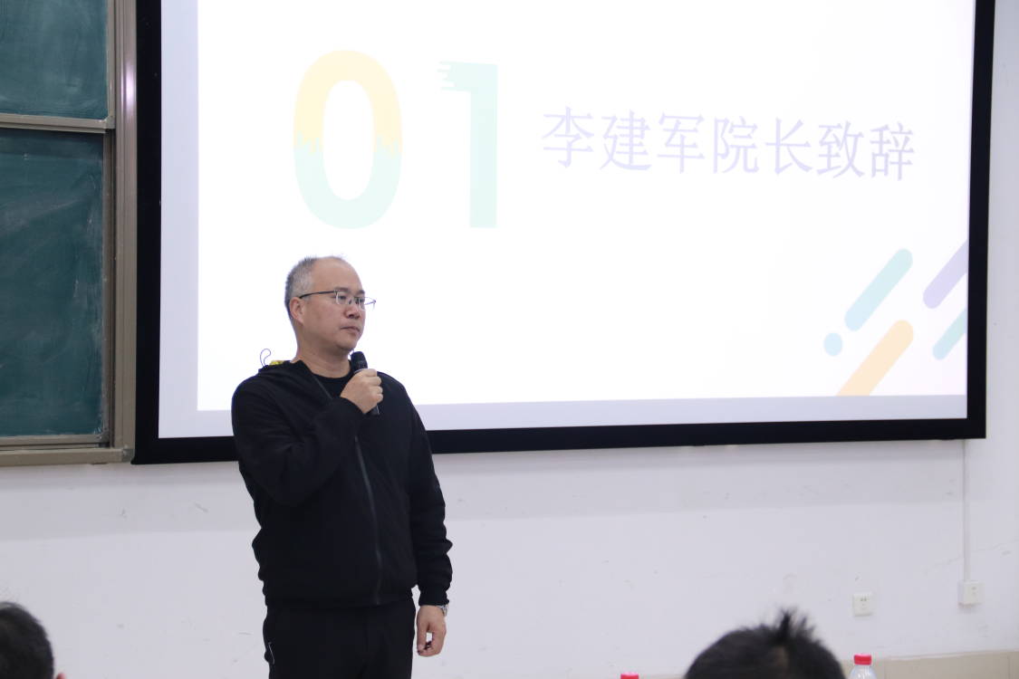 首先,信息学院院长李建军对本次到会的企业表示热烈欢迎,并作简单介绍。重点讲解本次宣讲会的目的在于通过校企合作,进一步加强工学结合、实践教学,提高学生就业能力,促进学生顺利就业。
