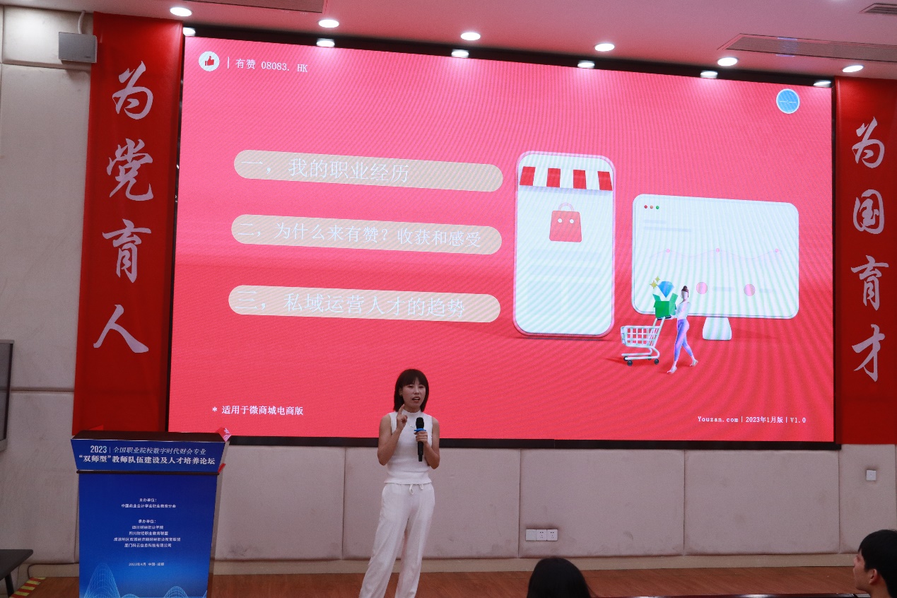 随后,成都六维企业咨询有限公司文佳总经理从企业发展概况、业务范围、企业文化及社会服务等方面介绍了公司情况,围绕校企合作模式、校级共建专业、共建产业学院、开设企业订单班、建立实习实训基地、建立企业员工培训基地、开展职业技能鉴定与考证培训、开展项目研究和成果转化、共享资源等方面进行了宣讲。