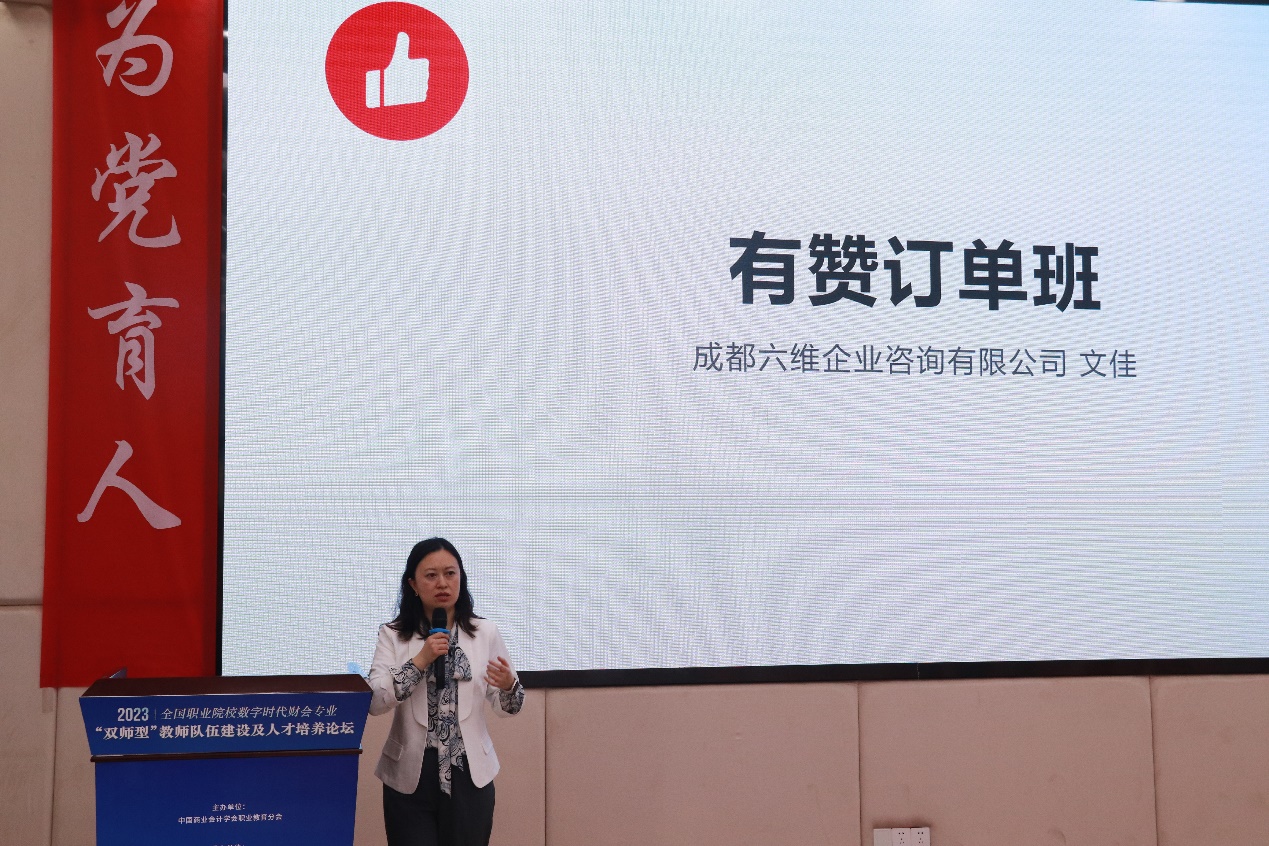 随后,成都六维企业咨询有限公司桑佩佩大客户经理希望校企双方要狠抓机遇,乘势而为,发挥各自优势,优势互补、共享资源。通过订单班的优势,帮助同学们学习新技能,提高实践能力。