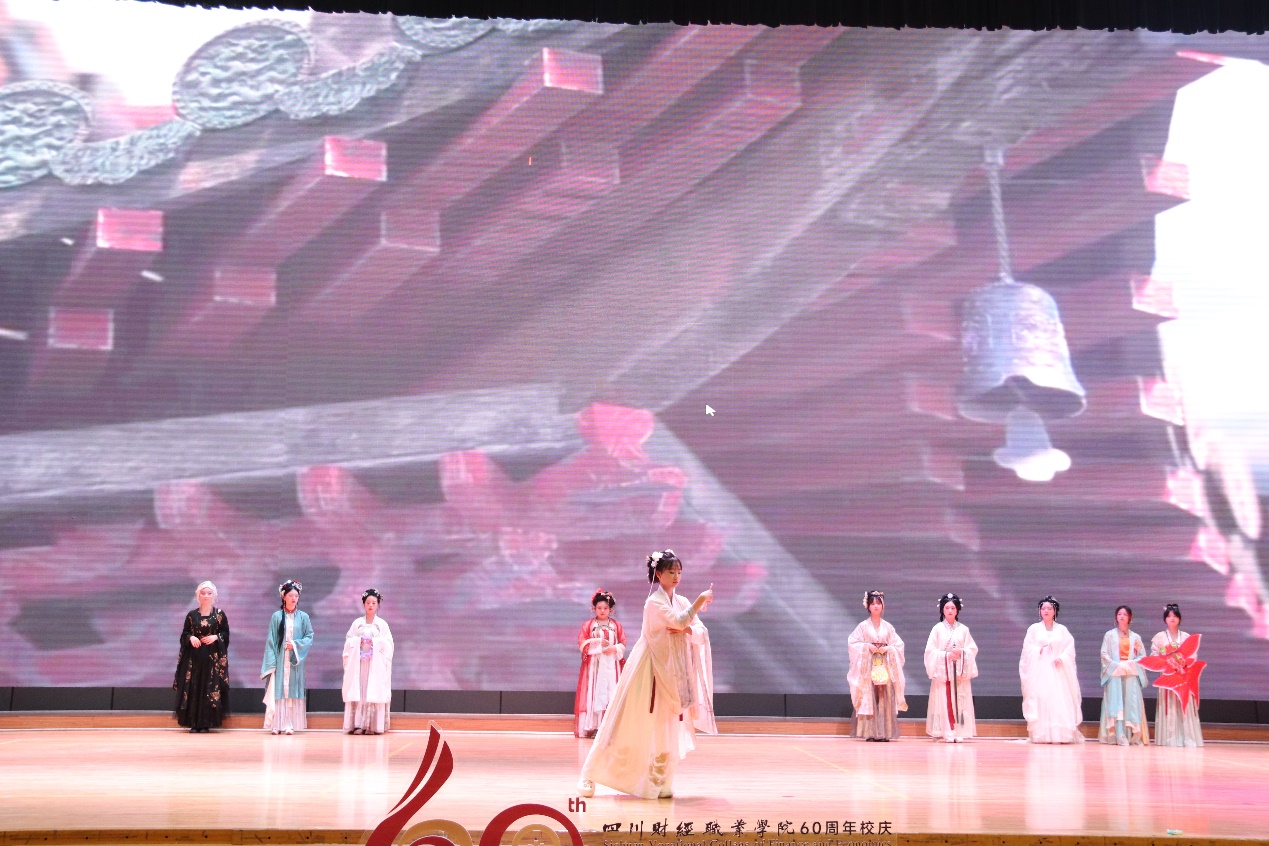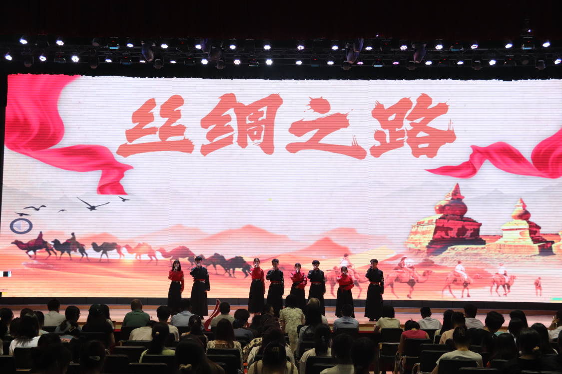 在第二篇章“铸匠魂”中,舞蹈《灯火里的中国》用轻盈的肢体语言传递了同学们敢于有梦、勇于追梦、勤于圆梦的青春激情;汉服走秀《风雅颂》通过描述虞姬、杨贵妃等家喻户晓的历史人物故事凸显年轻一代的文化自信,亦彰显了我国深厚的文化底蕴;在朗诵《丝路畅想》中,同学们用饱含深情、铿锵有力的话语致敬时代匠人,表达出了青年学子学习先进典型,赓续红色精神血脉的坚定决心。