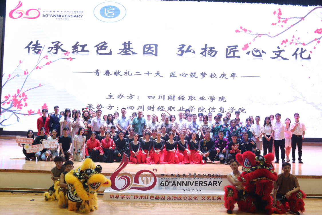 在迎接母校六十周年生日之际,5月31日晚,川财院信息学院“传承红色基因,弘扬匠心文化”文艺汇演在阳光体育馆举行。学校党委书记张华与党政办、学生工作部负责人,以及各二级学院的领导和老师们莅临本次晚会,与信息学院以及其他学院的同学们共赏视觉盛宴,共庆六十华诞。