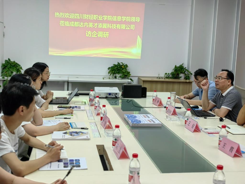 为进一步加强校企合作,拓宽学生实习就业渠道,了解企业用人需求,找出人才培养过程中存在的问题,加快教学改革步伐,提高教学质量。2023年6月30日上午,信息学院大数据技术教工党支部组织专题调研组赴成都达内英才添翼科技有限公司开展专业调研,旨在探索大数据技术专业群如何服务区域数字经济、数字产业,为区域经济的发展和创新注入新动力。大数据技术专任教师宋雅蓉、张晋渝,人工智能专任教师谢芳、张丽、刘雪,成都达内英才添翼科技有限公司魏海彬、王俊、冯林等相关领导参与本次调研活动。