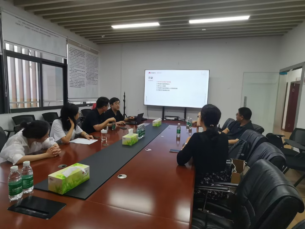 在参观结束后,双方进行了深入座谈交流,华为的技术专家从RPA的定义和产业发展、华为RPA数字机器人、RPA人才现状、华为RPA数字机器人人才培养方案、华为RPA实训室等方面进行了详细介绍。随后围绕学生就业问题,双方就专业课程教学、实训课程安排,以及学生就业中所遇到的主要问题展开深入交流。
