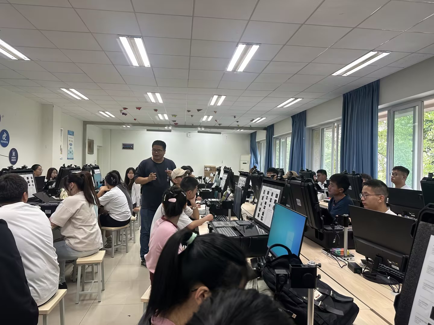 我校信息学院紧跟时代发展方向,积极探索新专业建设,2021年成功申请人工智能技术应用新专业,2022年开始招收首届学生,同时获批学校的人工智能实训室专项建设基金。在学校和学院领导支持下,在教务处、国资处和信息中心各位老师的配合下,信息学院于2023年9月初完成了国内先进水平的人工智能综合实训室的部署实施。同时完成相关的师资培训,在近日实训室正式投入使用。