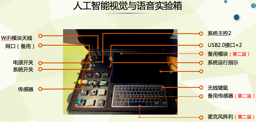 人工智能综合实训室设备包含人工智能实验箱、智能控制实景沙盘套件和可移动抓取机器人和教学实训资源四个部分,能够满足人工智能和大数据技术专业课程的实验、实训需要,也能满足其他专业的大数据、人工智能的认知教学需求。该实验室能够支持自然语言处理、计算机视觉、大数据分析与挖掘应用、深度学习、机器人等课程的实验和实训项目。