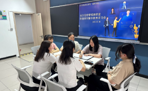 各教研室也分别通过自学、共同学习和研讨的方式开展了师德师风学习。会计信息管理教研室在A104开展师德师风教育警示学习会,并对师德师风教育案例做出了深入讨论,教研室主任田颖表示,作为一线教师,应该守住底线,将师德师风贯彻到教学点滴中,以严格标准要求自己,做无愧于学生,无愧于自己的好老师。人工智能教研室主任余海老师说:“在参与学院组织的师德师风警示教育专题学习活动中,我们深刻认识到师德师风的重要性。通过学习典型案例,我们意识到作为教师,必须恪守职业道德,严守法律纪律,以身作则,为学生树立良好榜样。这次学习不仅增强了我们的法制纪律观念,还提升了我们的廉政风险意识。我们将把学到的知识融入到日常工作中,不断提升自己的师德师风水平,为学生的成长贡献自己的力量。”商务数据分析与应用教研室教研室要求每位教师在学习和讨论的基础上进行自我反思,查找自身在职业道德方面的不足。教师们撰写了自我反思报告,并在教研室会议上公开宣读,承诺在今后的工作中严格遵守师德规范,做一名合格的高校教师。信息安全教研室说通过此次学习,我们更加明确了师德师风建设的重要性,并决心将所学所悟付诸实践,不断提升自我,为培养更多优秀人才贡献自己的力量。我们坚信,在学校、家庭、社会的共同努力下,师德师风建设将取得更加显著的成效。