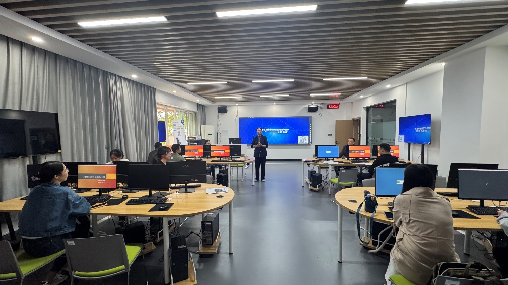 首先,信息学院副院长王曦进行大赛致辞,王院长强调本次比赛旨在全面考察我院教师的专业知识掌握、教学设计能力、课堂互动技巧、教学语言艺术以及现代化教育技术的应用等多方面的能力,他希望每一个参赛教师都能够以饱满的热情、严谨的态度、创新的思维,充分展示自己的教学风采。同时他也对青年教师提出期望,希望广大青年教师始终保持对教育事业的热爱与敬畏,以四有好老师、四个领路人的标准来严格要求自己,不断提升自身的专业素养和教育教学能力,成为学生成长路上的良师益友。最后王院长预祝各位参赛教师能够赛出风格、赛出水平、取得优异成绩。