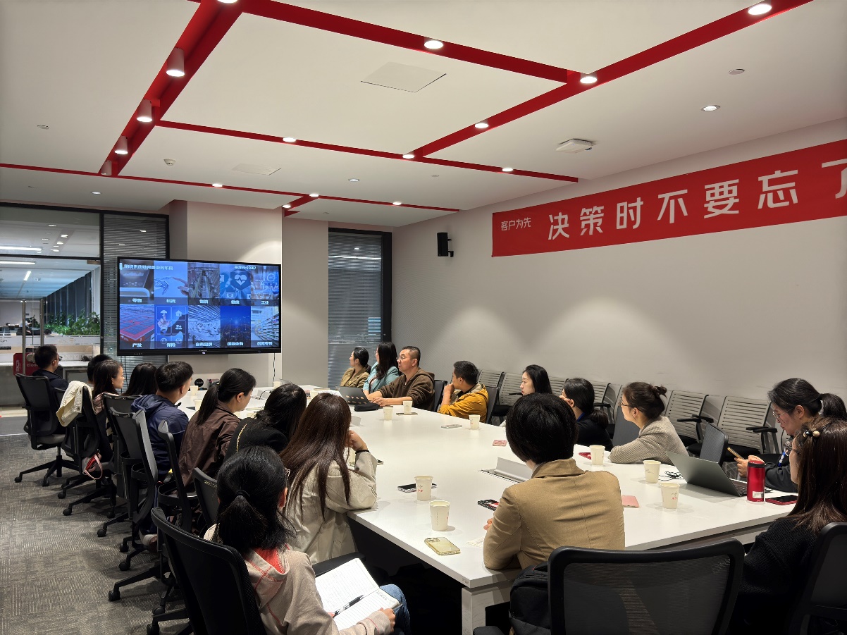随后,教研室成员与京东集团专家苏攀进行了面对面的深入交流。会上,苏老师分享了商务数据分析在商业活动中的应用等方面的宝贵经验,引用行业经典案例,向老师们展示了数据的魅力,为教研室成员提供了丰富的实践案例和灵感来源。双方还就当前商务数据分析领域面临的挑战、未来发展趋势以及人才培养路径等问题展开了热烈讨论,碰撞出了不少思想火花。