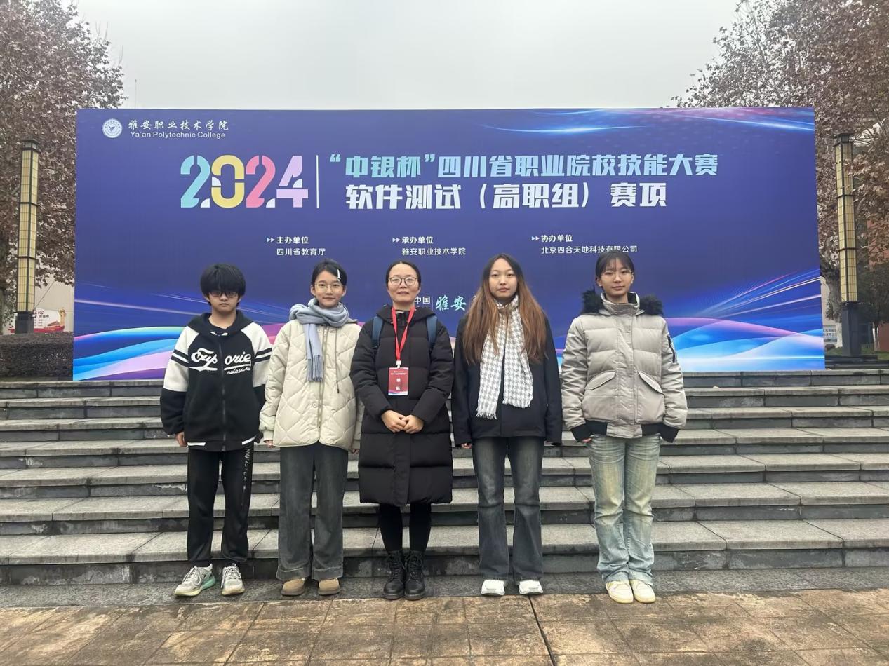 12月21日至22日,2024年“中银杯”四川省高职院校职业技能大赛(高职组)“软件测试”赛项在雅安职业技术学院举行,来自全省高职院校的73支参赛队伍同场竞技,我校信息学院2022级、2023级人工智能技术应用专业唐晶晶、青娜、白金鑫、陈钰4名同学组建两支队伍,在陈瑶、张丽老师的指导下均荣获四川省二等奖。