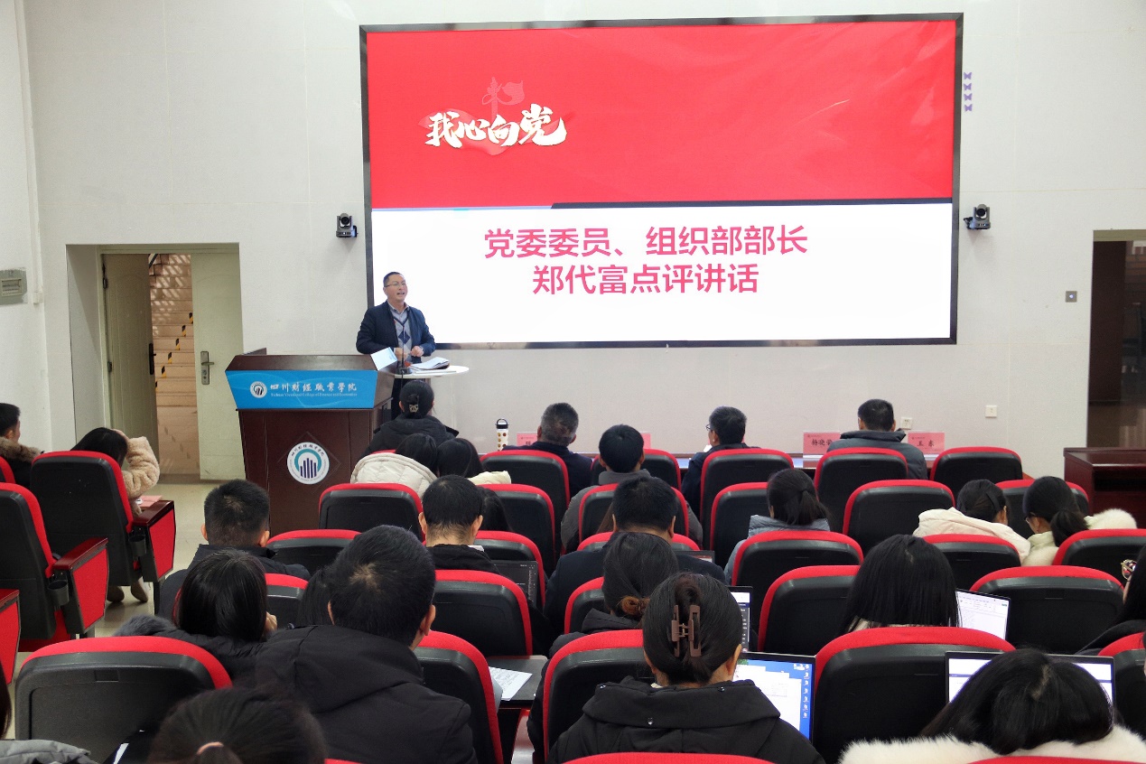 党总支书记杨晓荣,大数据技术教研室党支部书记王曦,会计信息管理教研室主任常竞,学生党支部书记翟兴旺分别向党总支和各支部现场述职,组织部部长郑代富对总支和支部党建工作情况进行点评,各支部党员对本支部书记述职情况进行评议。各教研室主任分别代表本专业教研室从重点工作、创新工作和熟化工作三个方面对2024年度工作进行总结。信息学院院长陈世平对2025年度工作计划进行安排部署。