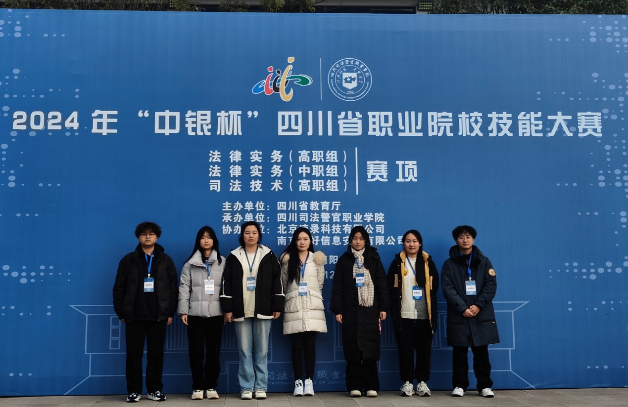 12月27日,2024年“中银杯”四川省高职院校职业技能大赛(高职组)“司法技术”赛项在四川司法警官职业学院举办,来自全省高职院校的26支参赛队伍同场竞技,胡燏、谢京雪、方刚、曹文静带领我校2024级信息安全技术应用专业张瑞佳、陈婧怡、刘颖喆组成1队,杨喻洁、张诗璐、徐深组成2队,最终1队荣获四川省三等奖。