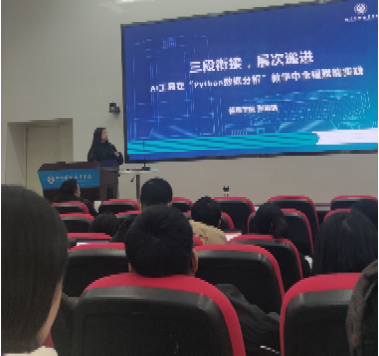 随后,五名教师将自己上课和思考的内容进行了分享交流。其中人工智能教研室主任余海老师提到AI辅助编程宛如一位智能伙伴,能依据用户需求自动生成代码,自动修复代码错误,极大提升编程效率,让软件工程师告别重复编写基础代码的繁琐。大数据技术教研室主任马莲老师分享了大数据技术专业将AI技术融合育人全过程,从‘教’与‘学’两方面、从‘引’到‘用’再到‘做’梯度递进的方式,提升学生利用大模型解决学习、实习中的实际问题。在学习过程中,为学生搭建‘学习助手’智能体,提供更为精准的知识库,提高学生学习的效率和质量。信息安全教研室曹文静分享了将AI智能体融入课堂教学,教师创建属于自己的智能体助手辅助教学,解决AI大模型准确性难题,提供更适合自己教学需求的服务,实现学生个性化学习、虚拟教师或同伴、人机情感交互等应用,并对比不同的智能体平台,演示文心智能体的教学应用。
