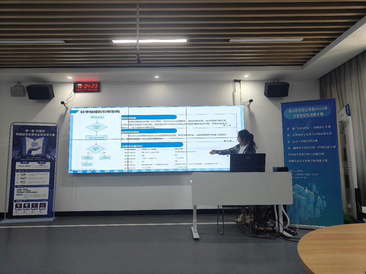 决赛现场,各参赛团队以PPT路演的形式展开激烈比拼。选手们围绕网络安全运维、应急响应、数据加密与防护等关键领域,结合实际案例,详细阐述了他们的技术方案和实践成果。精彩的路演不仅展示了选手们扎实的专业知识和创新思维,还体现了他们在团队协作和现场表达方面的优秀能力。