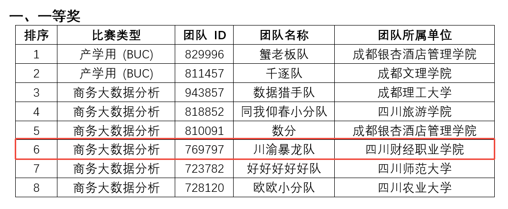 全国电子商务产教融合创新联盟主办的第十五届全国大学生电子商务 “创新、创意及创业” 挑战赛商务大数据分析实战赛省赛于2025年6月8日在成都职业技术学院举行。由信息学院陈怡桉、张娟娟老师指导的商务数据分析专业参赛队(学生:陈刚、陈茜、蒲俪珊、马羽佳)以出色的实力和精彩的表现,从全省80支参赛队伍中脱颖而出,其中包括众多来自全省的本科生与研究生强队,最终我校团队夺得省赛一等奖的优异成绩。