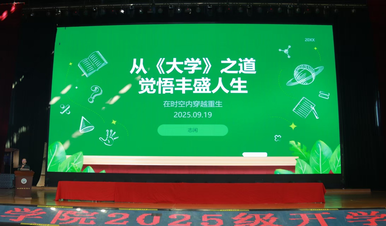 为引导2025级新生顺利开启大学学习生涯,树立远大志向,明确专业方向,信息学院于9月19日在校体育馆举办《从〈大学〉之道觉悟丰盛人生》专题讲座。此次讲座特别邀请马克思主义学院副教授张志博士主讲,为新生们带来一场兼具思想深度与成长启发的分享。