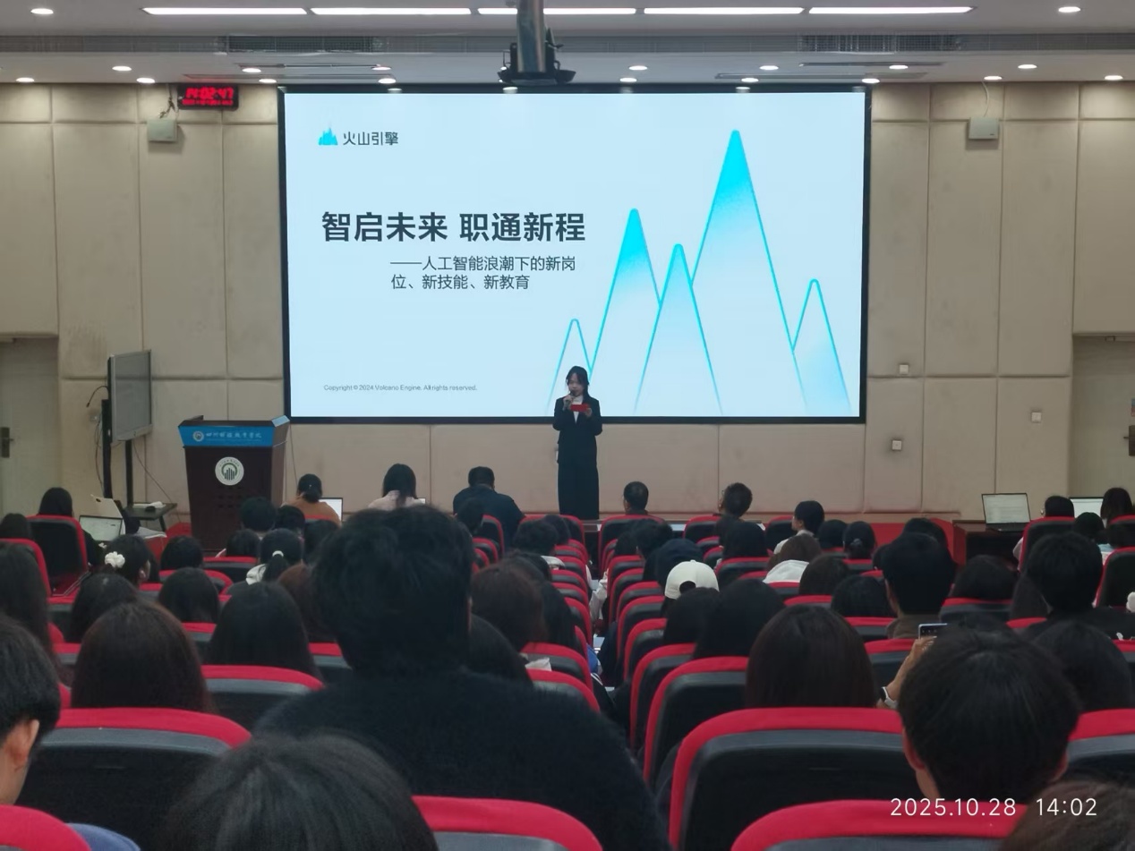 为帮助师生精准把握人工智能技术飞速发展带来的职业机遇与教育变革方向,并顺应AI技术重塑产业格局的趋势,信息学院于10月28日在B212开展“智启未来,职通新程-人工智能浪潮下的新岗位、新技能、新教育”主题讲座,本次讲座特别邀请了火山引擎解决方案专家游思佳担任主讲嘉宾。信息学院院长陈世平及全体专任教师、学生代表参加本次讲座。