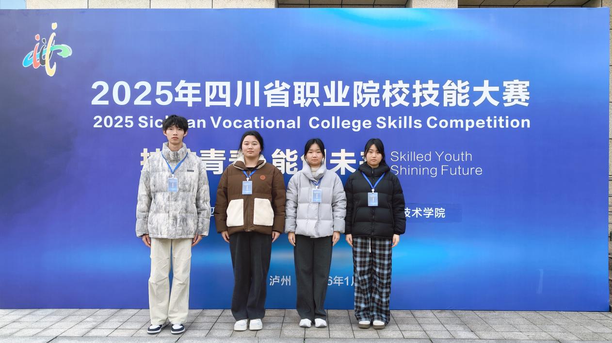 2026年1月9日,2025年四川省职业院校技能大赛新一代信息技术赛道第四组比赛在泸州职业技术学院举办,来自全省45所职业院校的精英团队参与竞技,胡燏、谢京雪带领我院2024级信息安全技术应用1班的陈婧怡、梁俊豪、张瑞佳和张诗璐4名同学积极参赛,获四川省三等奖。