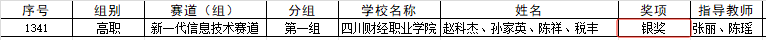 2026年1月12日至15日,2025年四川省职业院校技能大赛新一代信息技术赛道(高职1组)“大数据与人工智能”赛项在四川邮电职业技术学院举行。由我校人工智能专业专任教师张丽、陈瑶共同指导,赵科杰、孙家英、陈祥、税丰四名同专业学生组成的参赛团队,与全省高职院校顶尖选手同台竞技,最终斩获省级银奖。