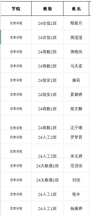 经过学生个人自主申报,班级团支部和团总支初审,二级学院审核同意,产生了2025年秋季学期信息学院关于青年马克思主义者培养工程第十期学习班学员拟推荐名单,现予以公示,公示期为3天,名单如下: