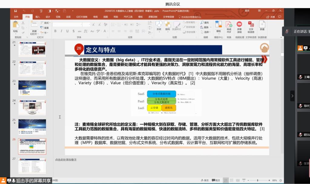 为上好《大数据应用基础》公共必修课程,信息学院组织教师团队通过网络学习和专家集中讲授的方式开展了学习讨论。2021年2月27、28日,为开学上课做好准备,信息学院全体教师积极开展《大数据应用基础》教学研讨。2月27日上午,由方刚老师主讲课程的项目内容和教学思路。2月28日下午,教学组老师们再次组织了线上腾讯会议,将这几天大家在共同备课中的思路和疑问进行探讨,形成了最后的教学资源、教学方式方法等,以确保第一节的课顺利开展。