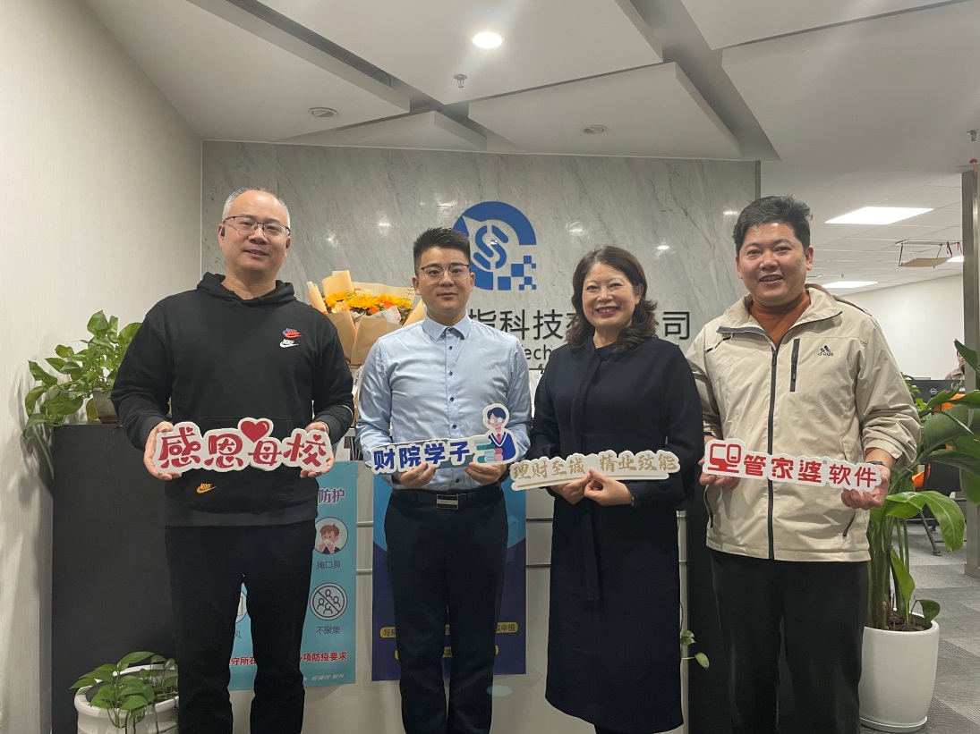 下午14时,由信息学院李建军院长带队,来到成都手趣易指科技有限公司,看望2009级计算机管理1班杨涵同学。杨涵现担任成都手趣易指科技有限公司总经理职务,对老师们的到来表示由衷的感谢,做了简短的欢迎仪式后,进行分享毕业十年来的成长经历,他说:“感谢学校对于自己多年的培育,从进校的职业规划,到毕业的就业指导,以理财至诚、精业致能的校训鞭策自己,做到人生有目标,思想有方向,行动有动力,于2019年开始成立成都手趣易指科技有限公司,主营开发、销售管家婆软件及网络技术研发等项目”。